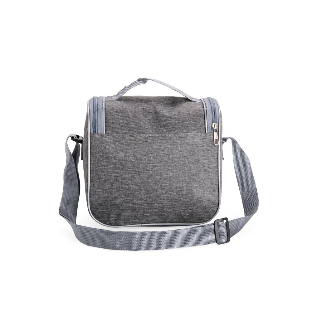 Bolsa térmica com capacidade de 6 litros. Feita em Oxford resistente à água, possui abertura frontal em zíper, além de revestimento interno em alumínio EPE, que ajuda a conservar a temperatura de alimentos e bebidas por mais tempo. Conta com uma alça superior e uma alça transversal fixas.