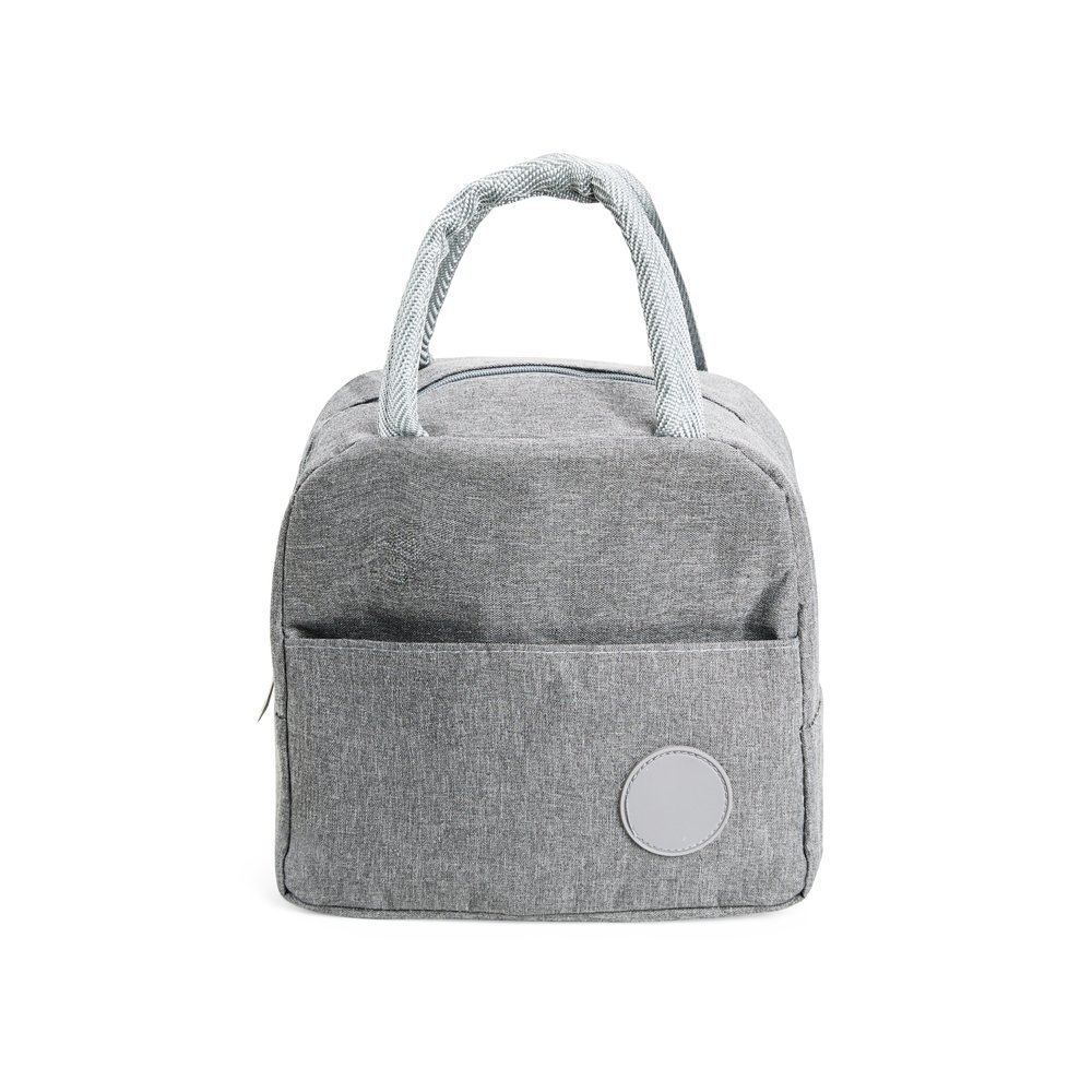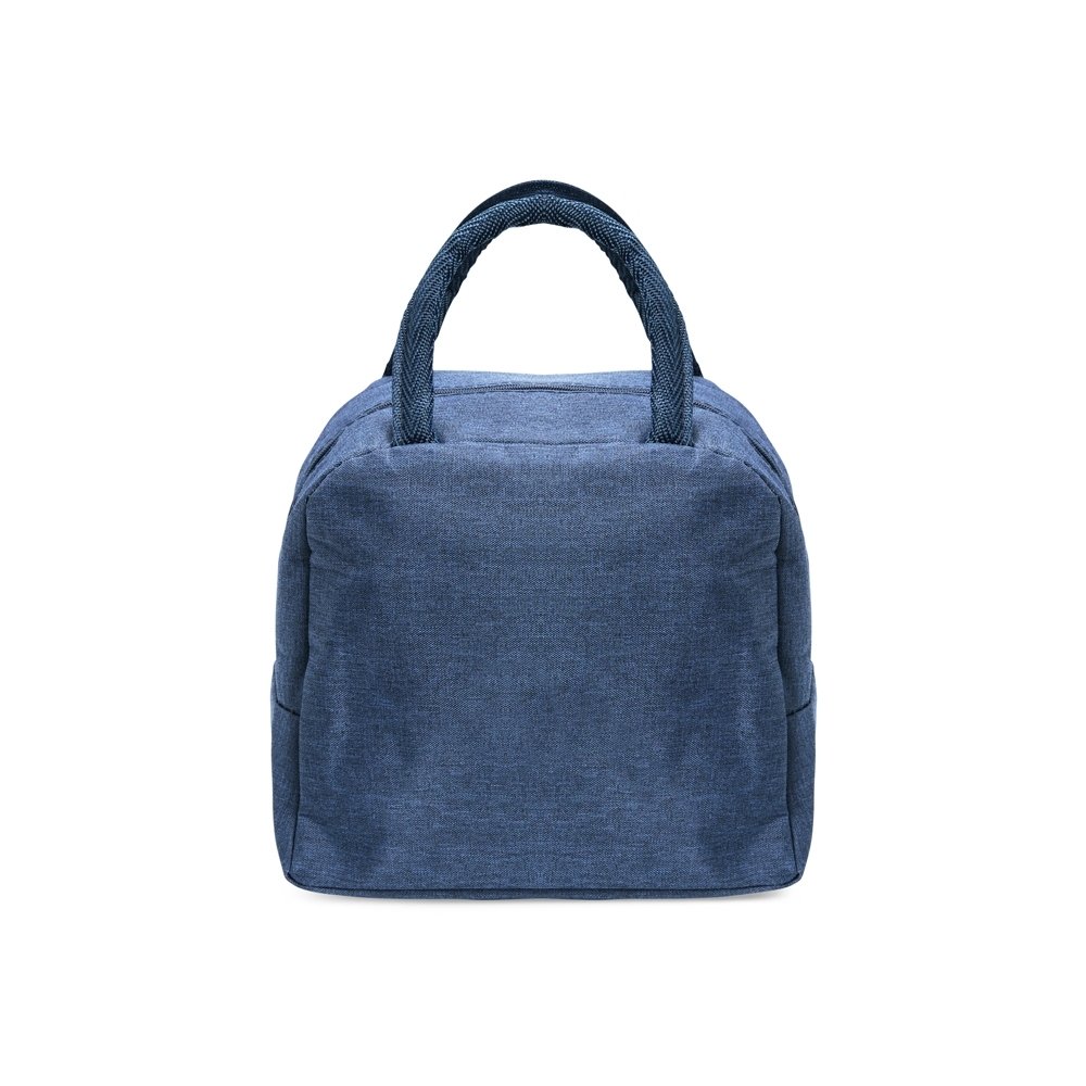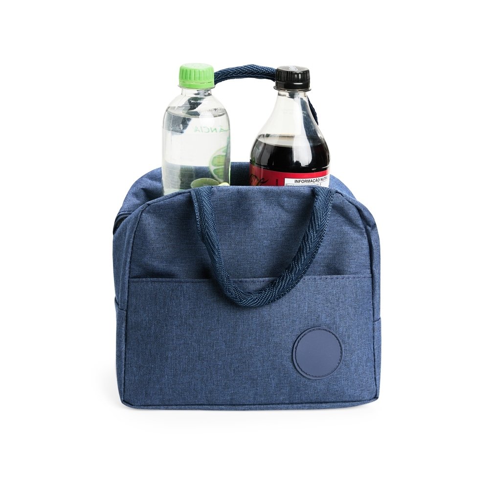 Bolsa térmica feita em poliéster resistente à água e capacidade de até 6 litros. Possui revestimento interno em folha de alumínio, além de bolso frontal com plaquinha fixa em plástico e par de alças de nylon para transporte.