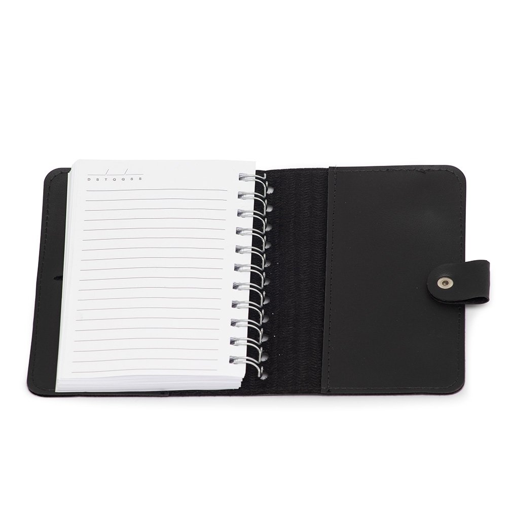 Feita para registrar ideias, pensamentos, tarefas e compromissos, nossa Caderneta Flexível em couro combina elegância e funcionalidade. Com aproximadamente 95 folhas brancas pautadas, ela é ideal para anotações, esboços e reflexões. Além disso, a caderneta possui bolsos internos para cartões e documentos e um elástico para lacre, garantindo que tudo fique seguro e organizado.