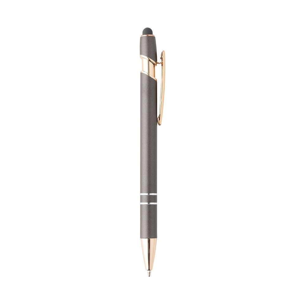 Caneta metálica touchscreen com acionamento por clique, carga esferográfica azul 1.0mm.