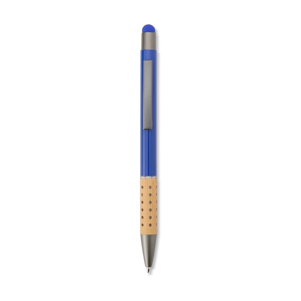 Conforto e fluidez ao seu alcance! Nossa caneta metálica touch é perfeita para os dias repletos de anotações. Possui carga esferográfica na cor azul 1.0 mm, acionamento por clique, além de uma ponta touch para utilizá-la em dispositivos eletrônicos sem tocar diretamente na tela, evitando manchas indesejadas, e acabamento em bambu, proporcionando uma experiência de escrita precisa e um toque sustentável.