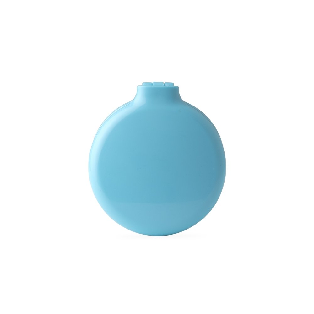 Escova plástica com acabamento leitoso e espelho interno de vidro sem aumento. Possui cerdas retráteis macias que massageiam o couro cabeludo enquanto penteiam os fios de cabelos.
