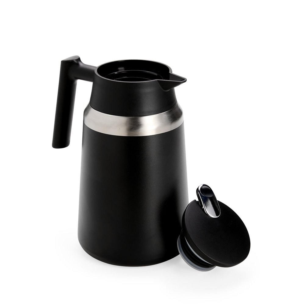 Garrafa térmica feita em inox com cabo e bico em plástico resistente, base emborrachada antiderrapante e capacidade máxima de 1,5 litro. com acionamento por pressão para servir o conteúdo. Apresenta estrutura de parede dupla e isolamento a vácuo, que conserva a temperatura dos líquidos por mais tempo.