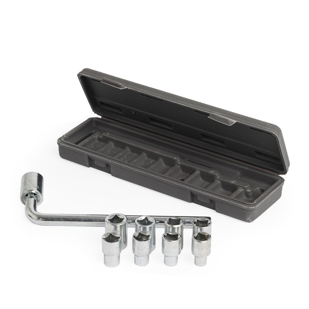 Kit ferramenta com 10 peças em estojo plástico. Contém: 1 chave L e 9 soquetes.