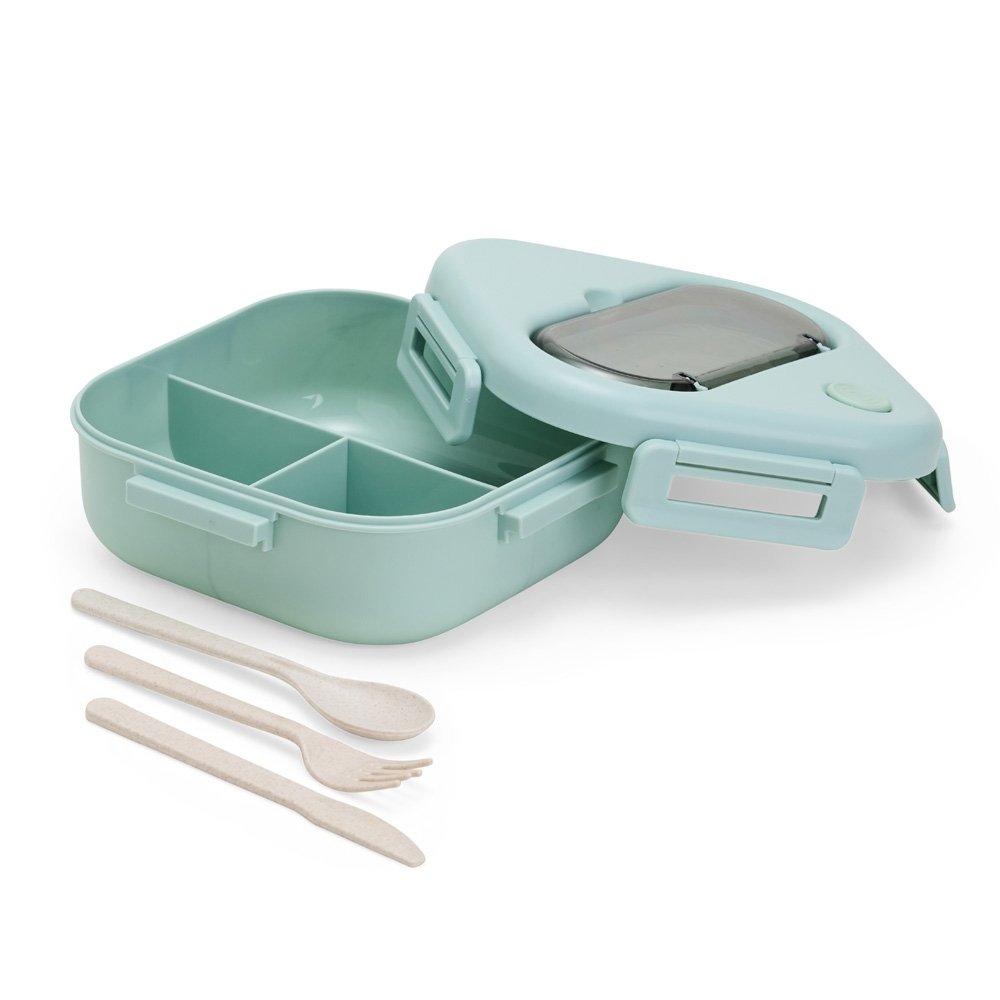 Marmita hermética do tipo Bentô de 1,2 litros de capacidade, com 3 divisórias e 3 talheres. Feita em PP atóxico e livre de BPA, é completamente segura para armazenar alimentos. A tampa possui travas de segurança, supervedação, silicone com respiro e alças que facilitam o transporte. Os talheres podem ser guardados em um compartimento separado com tampa transparente, garantindo praticidade durante as refeições. Além disso, as três divisórias internas mantêm os alimentos separados, preservando o sabor de cada um. Uma escolha inteligente para uma vida prática e saudável.