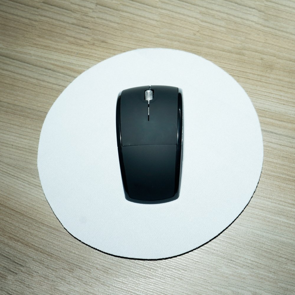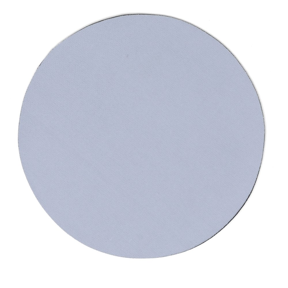 Mouse pad neoprene formato circular com parte inferior emborrachada antideslizante.