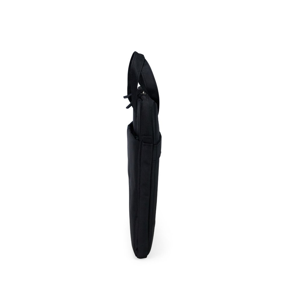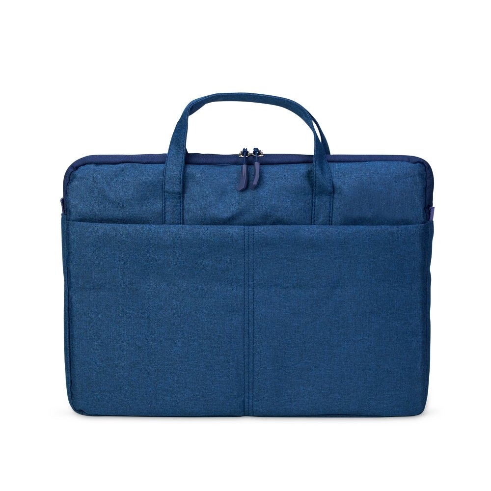 Pasta para notebook em poliéster impermeável, fechamento em zíper e capacidade para dispositivos de até 15,6 polegadas. Possui compartimento principal acolchoado e bolso frontal. Conta ainda com duas alças de mão, duas abas menores para encaixe de alça transversal removível e faixa posterior para acoplar em malas. Acompanha alça transversal ajustável.