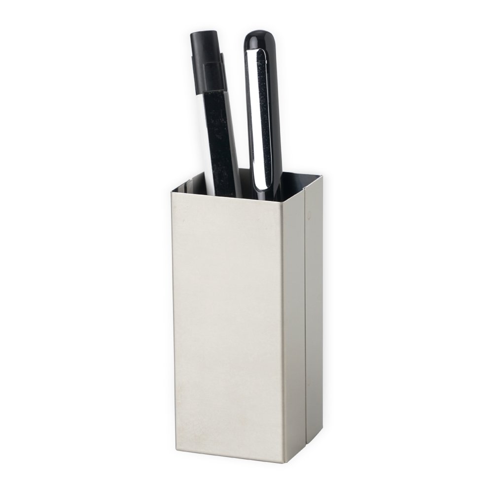 Porta canetas metálico espelhado.