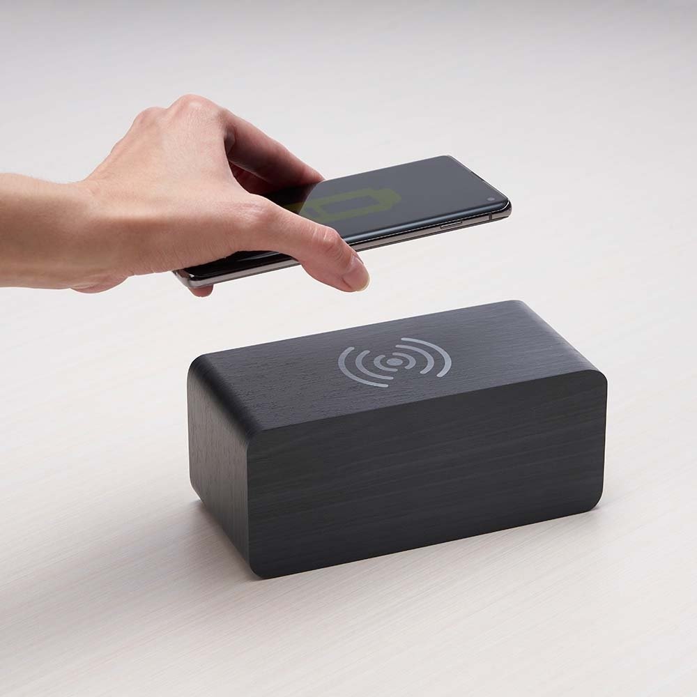 • Relógio de Madeira com Carregamento por Indução