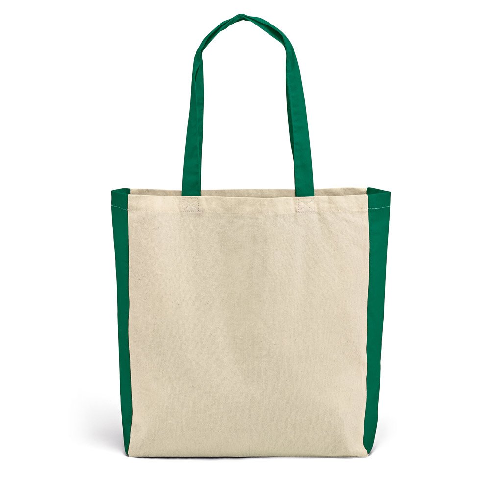 Sacola em 100% algodão (140 g/m²) com alças de 65 cm. 370 x 410 x 100 mm