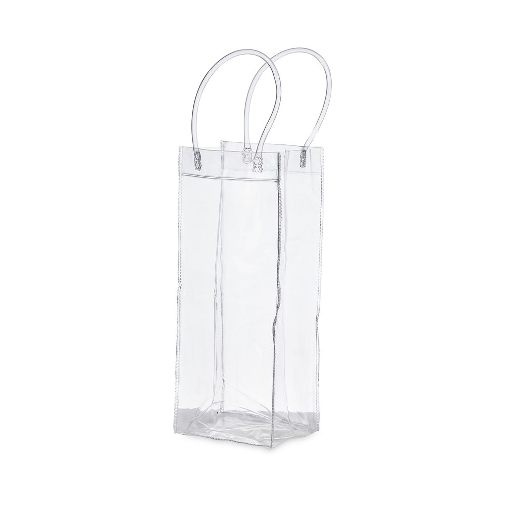 Sacola plástica para gelo com alça. Icebag serve para transportar garrafas exemplo: vinho, champagne, vodka… Basta colocar gelo e transportar seu cooler prático. OBS.: Para prolongar a vida útil do material pvc, atente-se as condições ideais de armazenamento: mantenha o material em local seco e arejado, livre da exposição ao sol e altas temperaturas. Após a utilização da icebag com gelo, certifique-se de secar completamente o material antes de guardá-lo, pois o armazenamento deste em estado úmido poderá comprometer a sua vida útil.